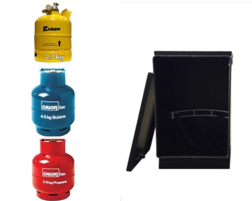 This black metal box which fulfils all the requirements for a gas safety locker in which to store your 2.7kg Gaslow 3.9kg or 4.5kg gas canister.