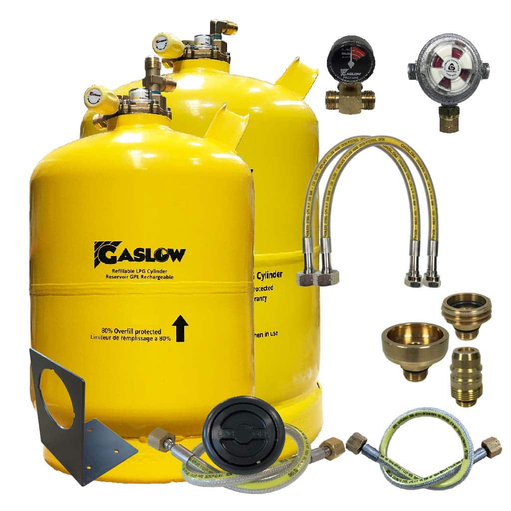 Gaslow Multivalve self-refillable gas cylinders are easy to use and will save you money every time you fill with LPG, making them a convenient alternative to the standard rental gas bottles you would normally exchange at a garage forecourt or camping store, for example Calor Gas, Flo Gas or Shell Gas cylinders.