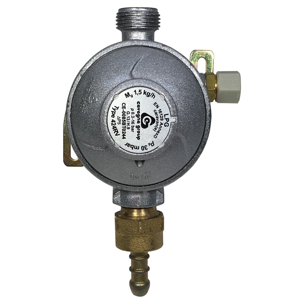 The Gaslow 30mb compact regulator by Cavagna is an ideal replacement regulator for your caravan or motorhome gas supply. The regulator comes with an low pressure nozzle outlet ready for rubber gas hose and a W20 inlet fitment ready for a regulator hose or changeover for twin bottle gas systems. This regulator is ideal for van conversions due to its compact neat size. suitable for propane or butane gas